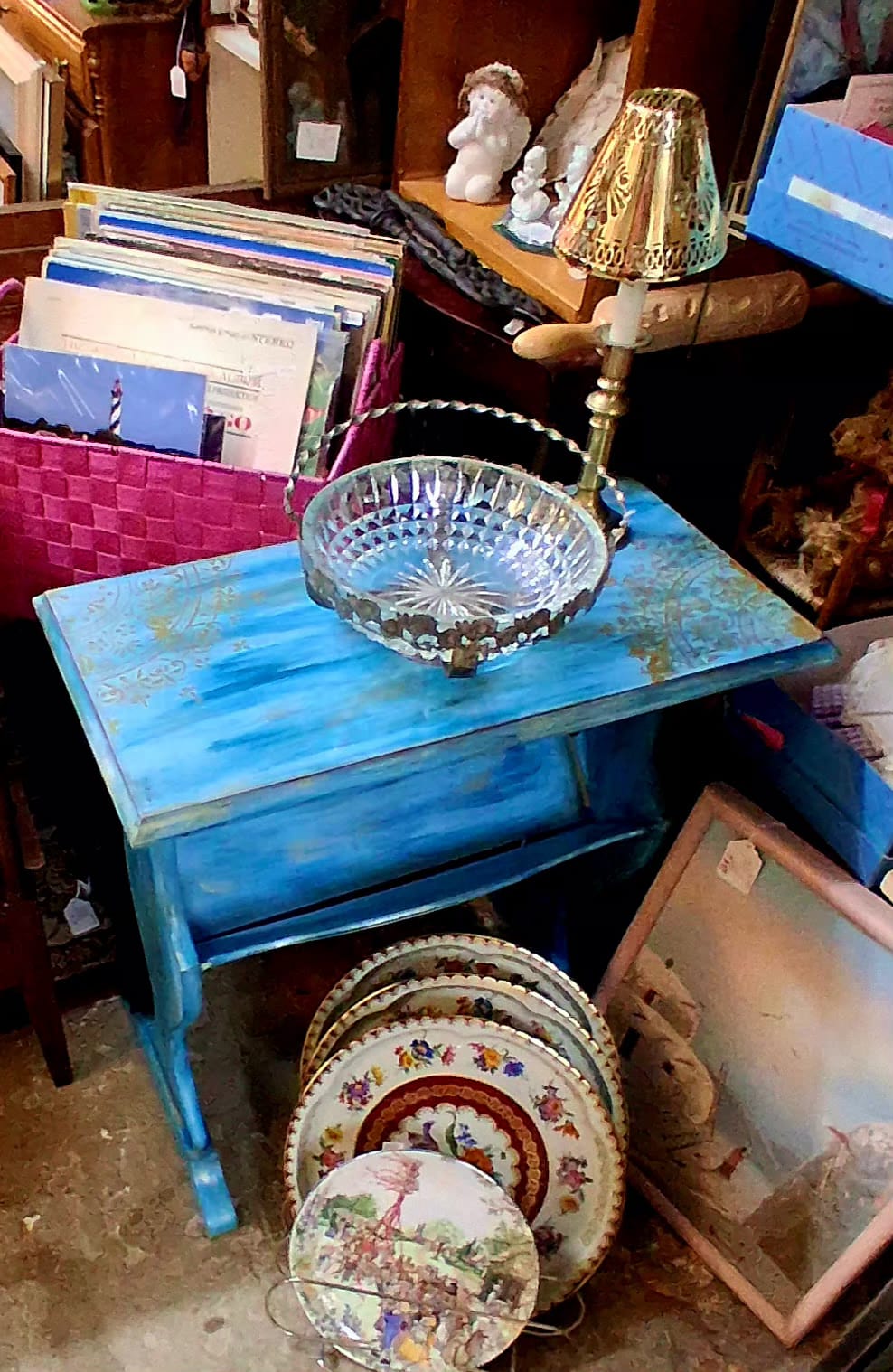 Every inch of this table has been lovingly transformed, from the gracefully curved legs to the decorative lower shelf, which provides added display space for books, plants, candles, or curated décor pieces. The hand-painted finish carries through the entire structure, giving the table a cohesive, boutique-style aesthetic that makes it feel truly one-of-a-kind.