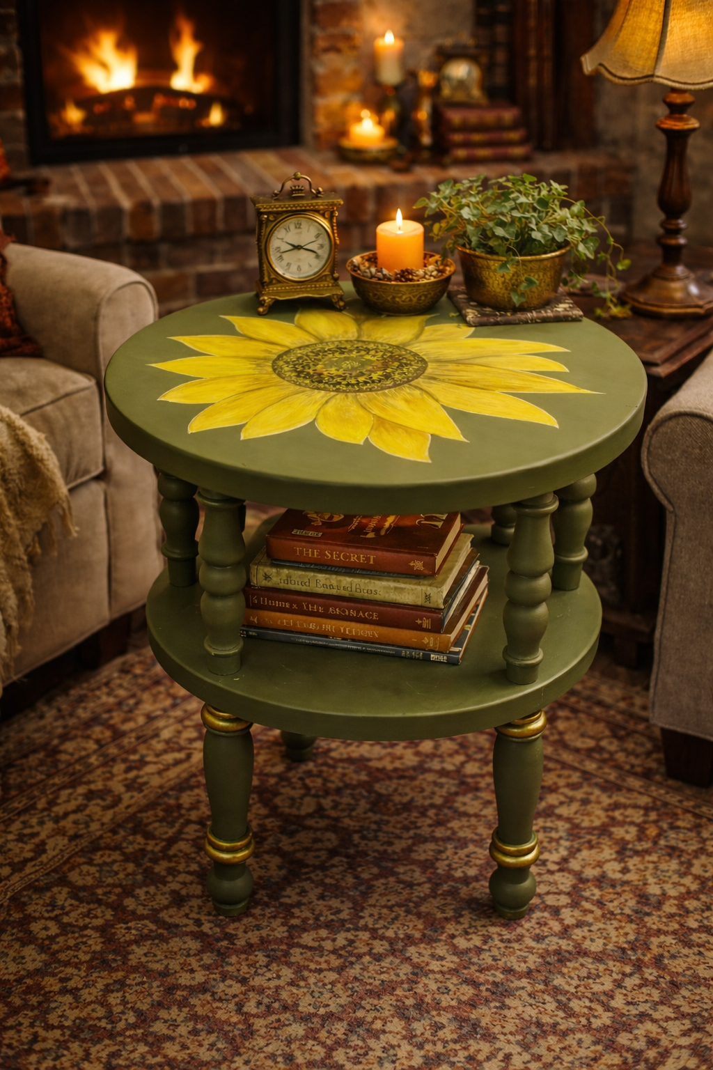 🌻✨ Hand-Painted Green Sunflower Table ✨🌻