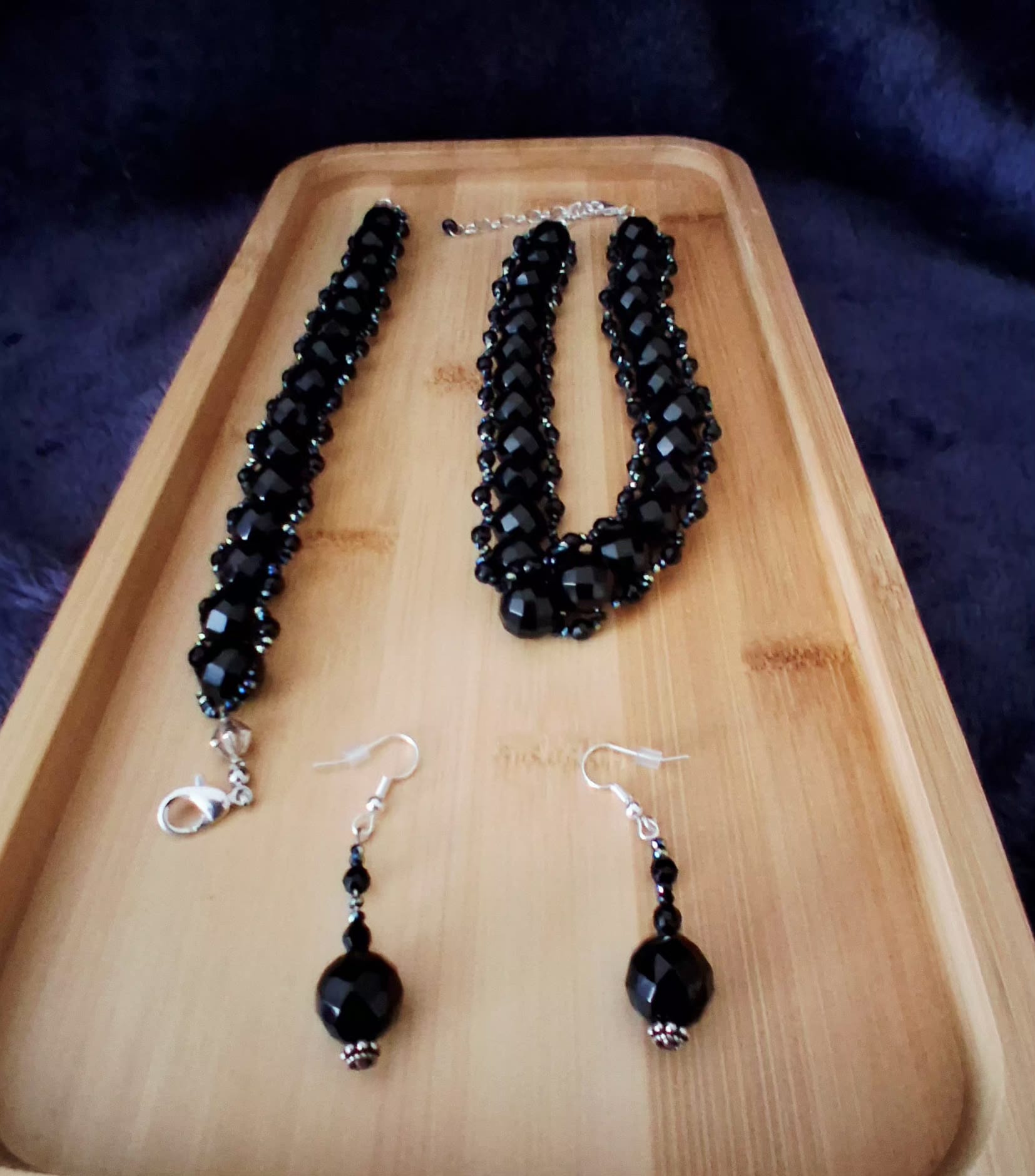Handmade Black Onyx Jewelry Set – Necklace, Bracelet & Earrings
