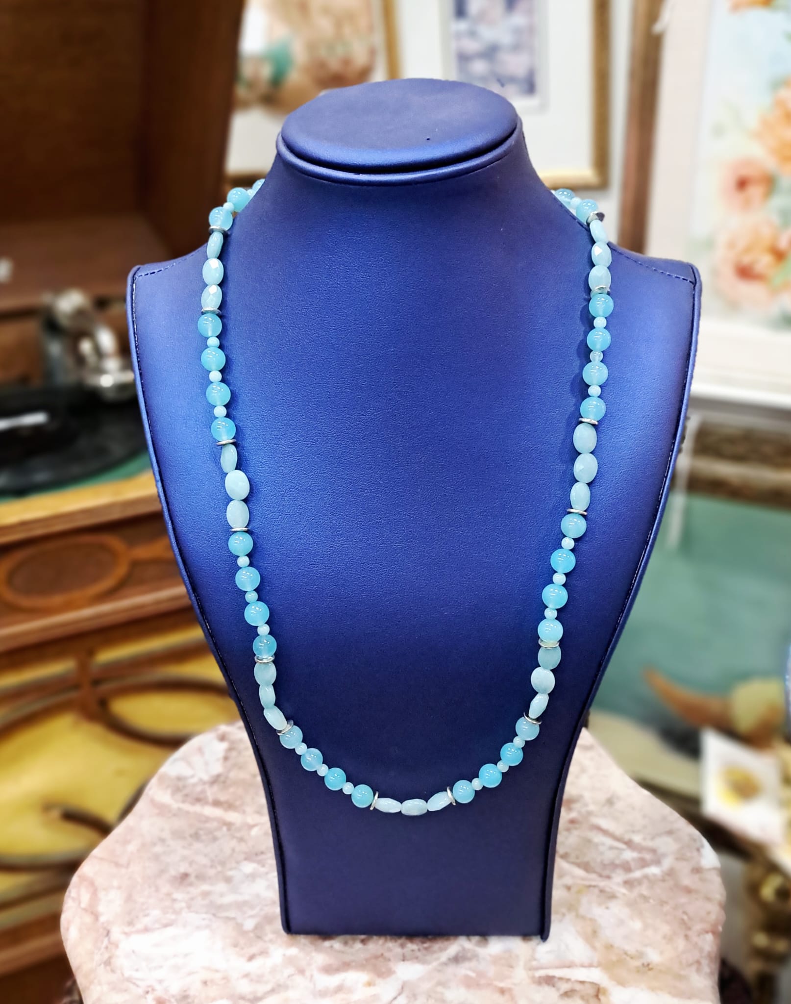 Gemstone: Semi-precious blue stone (polished round and oval beads)