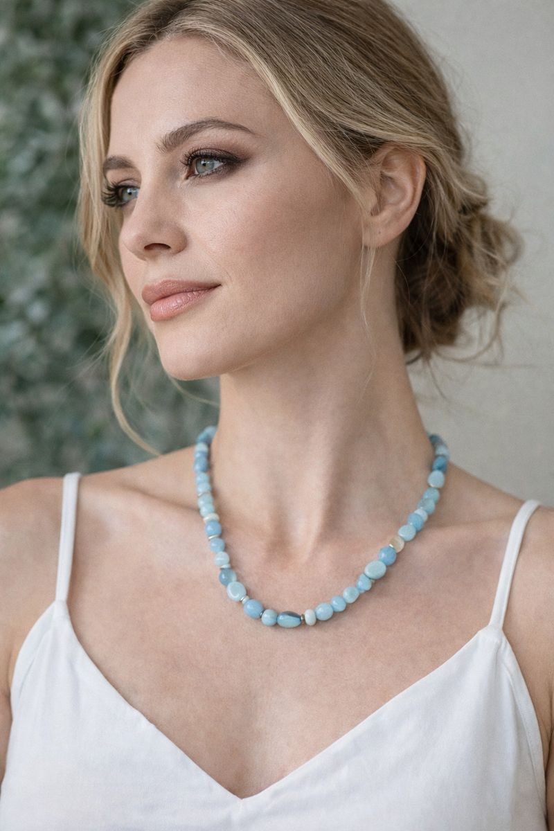 Add a touch of elegance and bohemian charm to your look with this beautiful handmade necklace, crafted with high-quality semi-precious blue gemstones.