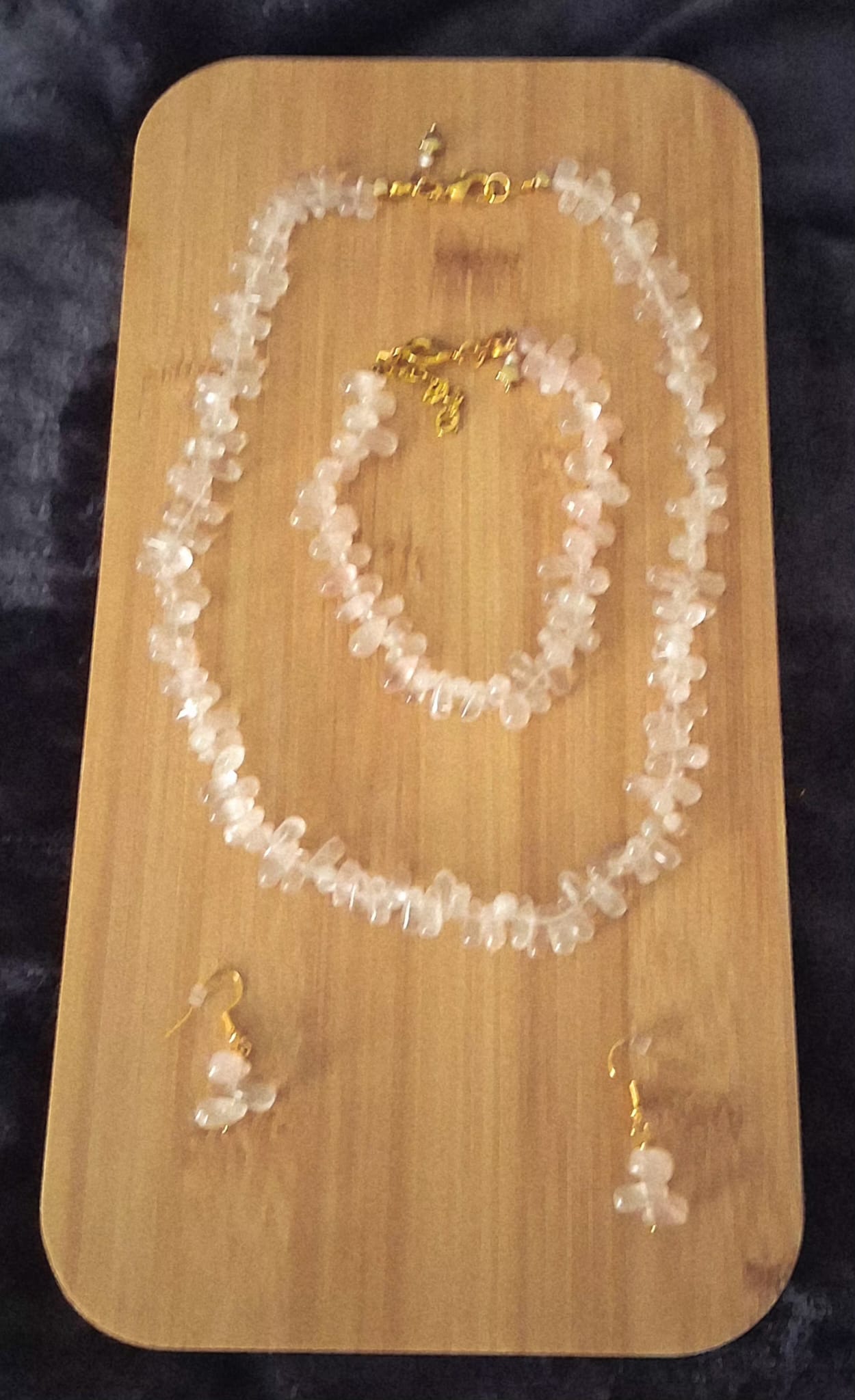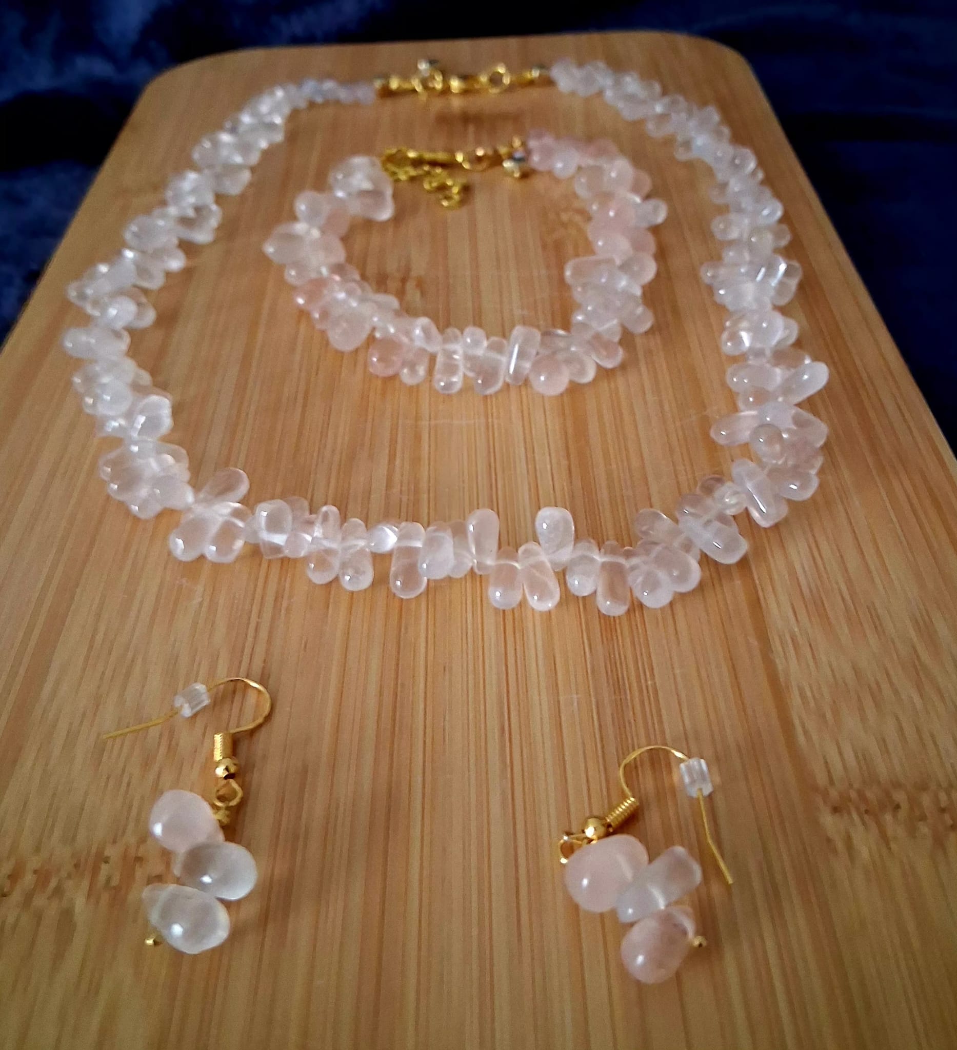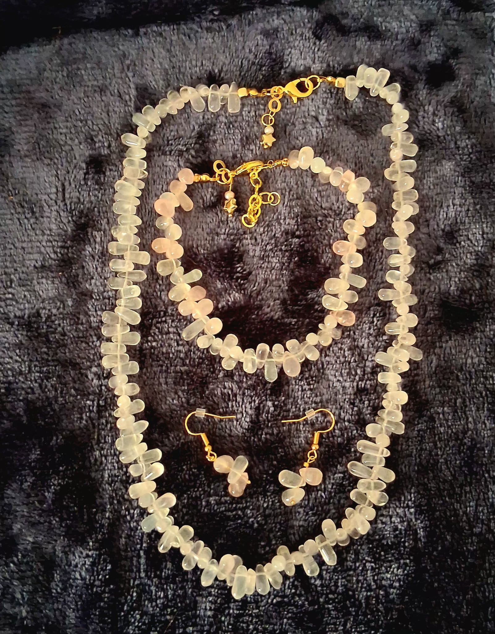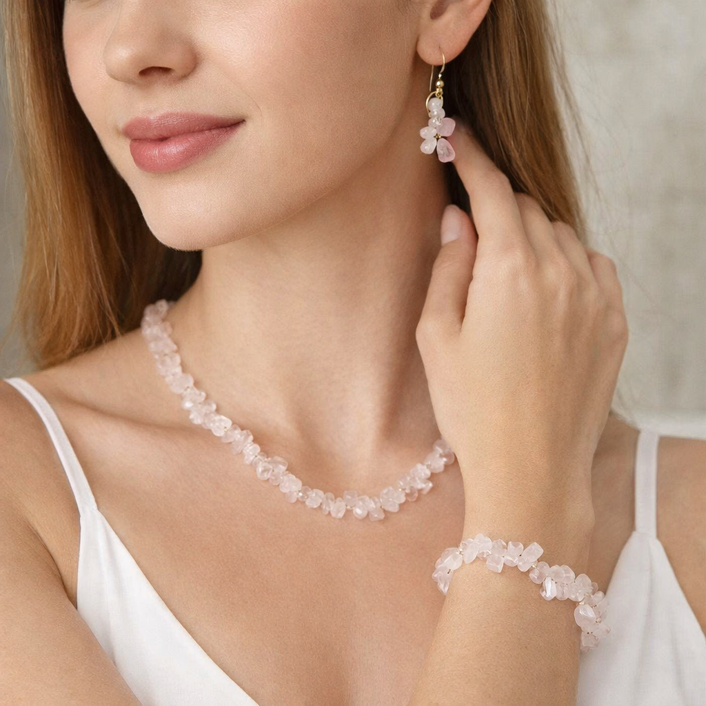 Rose Quartz Jewelry Set – Necklace, Bracelet & Earrings
