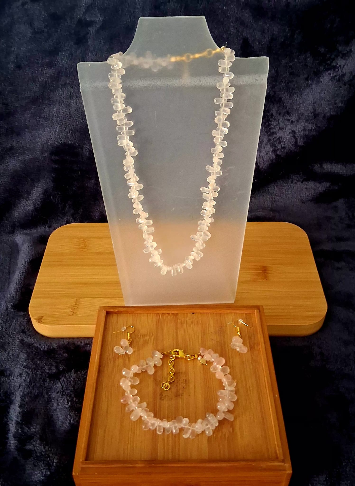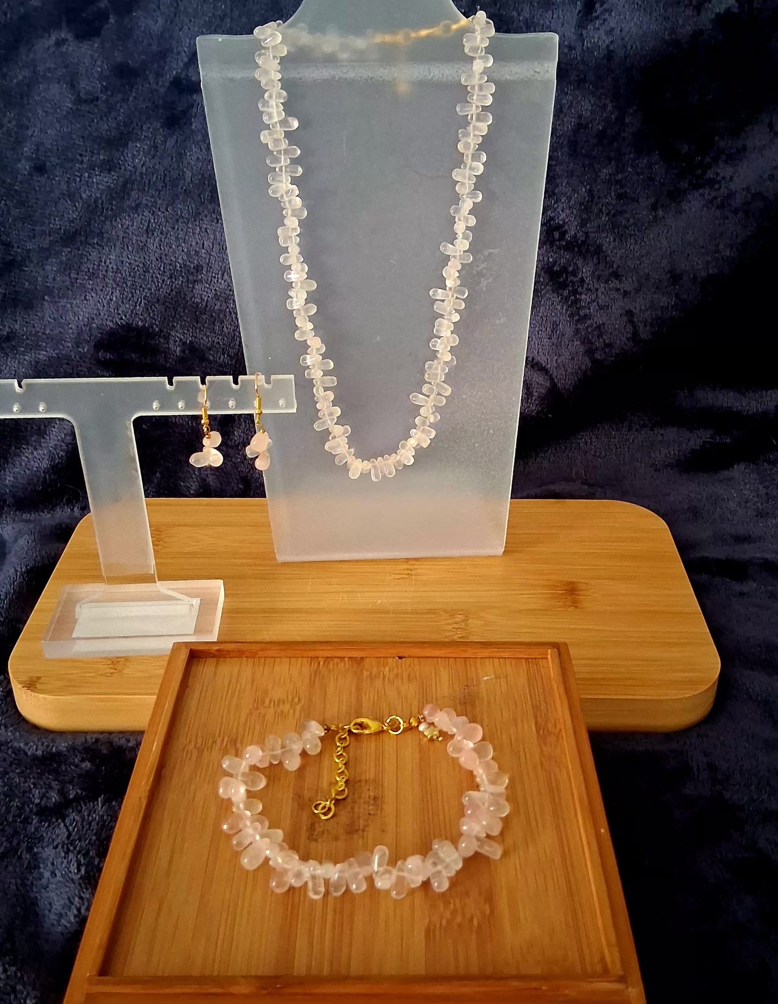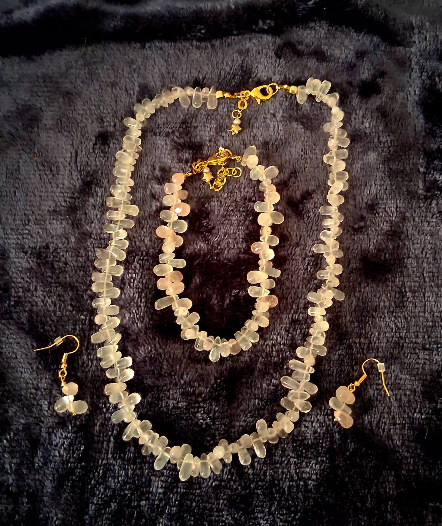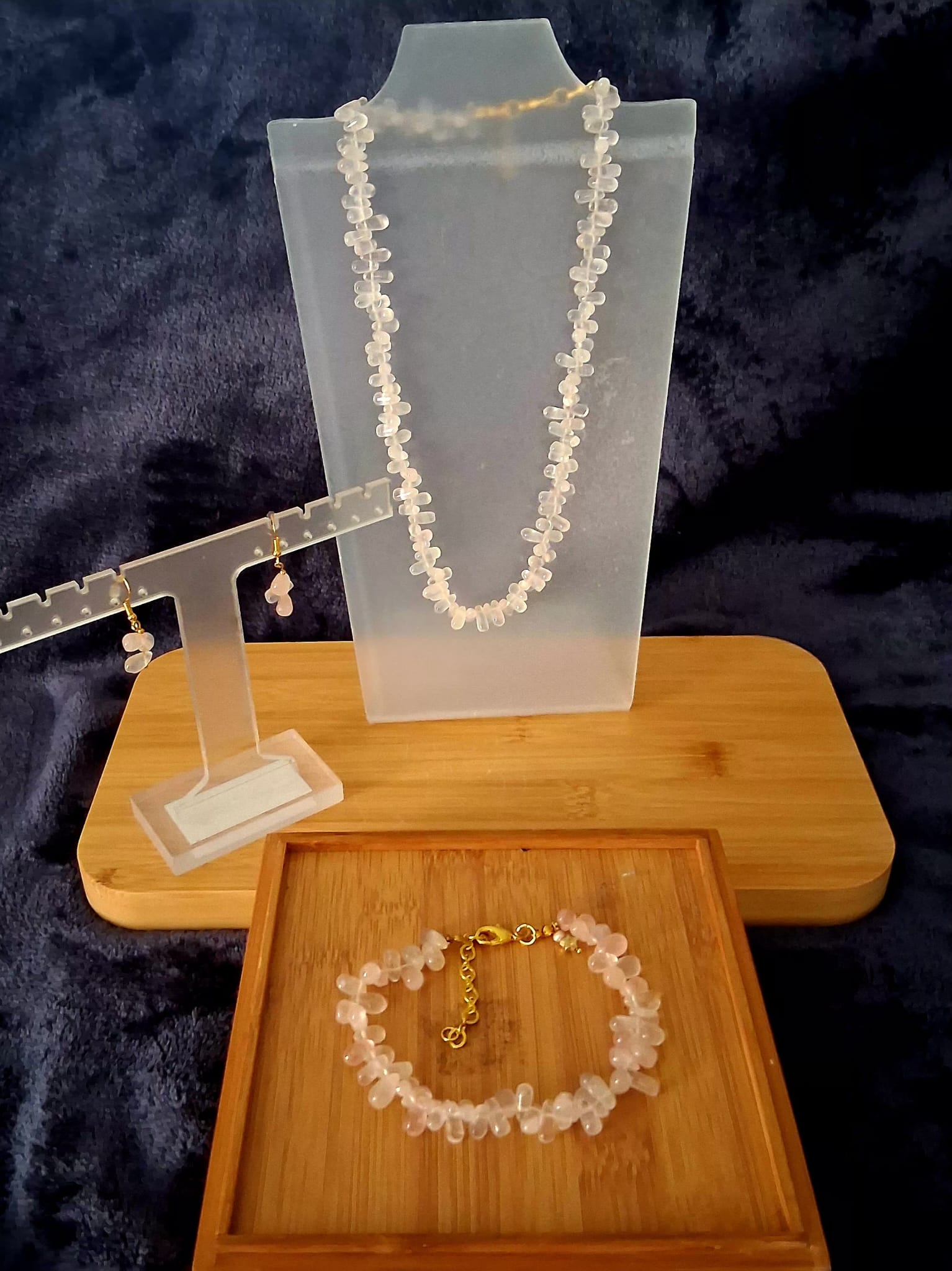 Rose Quartz Jewelry Set – Necklace, Bracelet & Earrings