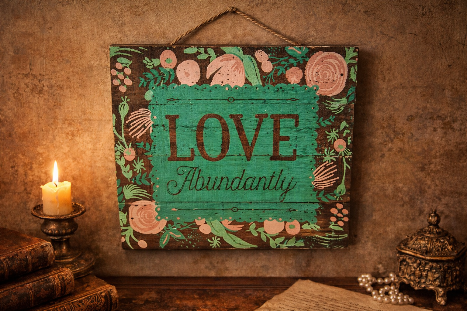 This piece adds a cozy, farmhouse-inspired touch to any décor while serving as a daily reminder to embrace love in abundance.